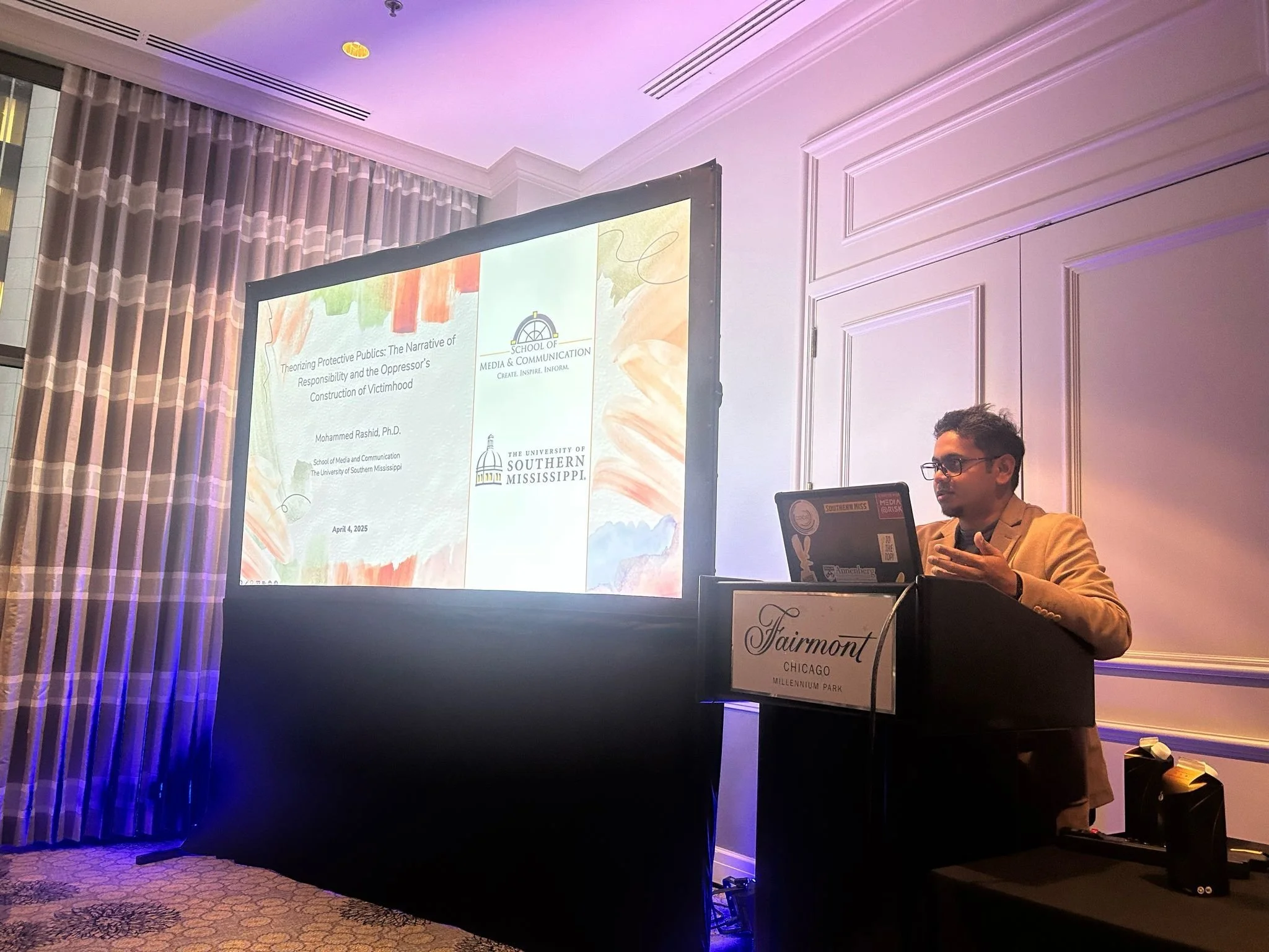 My name is Mohammed Rashid (he/they), and I am an Assistant Professor at the School of Media and Communication at The University of Southern Mississippi. Here I teach the graduate courses Mass Communication Theory (COM 607), Media and Society (COM 780), and Critical Cultural Theory in Communication Studies (COM 608), along with undergraduate courses Digital and Social Media (COM 310), Media Management and Economics (MCJ 463), Media Criticism (MCJ 462), Digital Communication (CMS 150), and Introduction to Film Studies (FLM 170).
